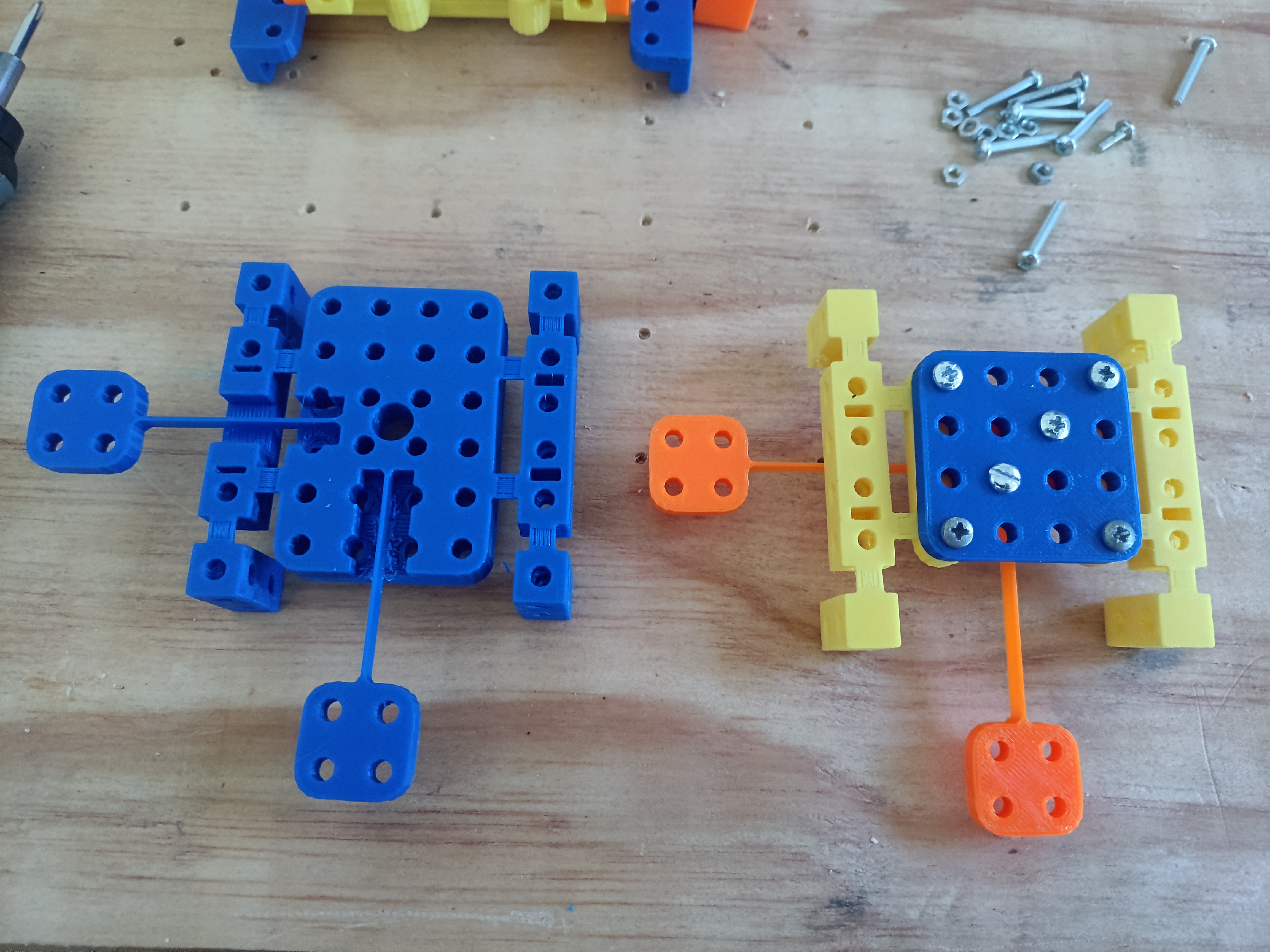 The part then drops right into the original assembly like so, still with Metriccano grid holes in it so that I can make modifications during further prototyping. Though I can of course set the hole diameter to zero and leave all beams solid if I wish.